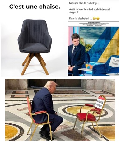 François Jost rejoint cette analyse en affirmant que les mèmes ne sont pas simplement « des images pour rire », mais constituent également « des machines à fabriquer des communautés » (JOST 2022 : 133). Ainsi, les mèmes ont joué un rôle central dans la diffusion du discours populiste et nationaliste de Simion, en renforçant la viralité de ses messages et en mobilisant ses partisans dans un environnement numérique interactif.